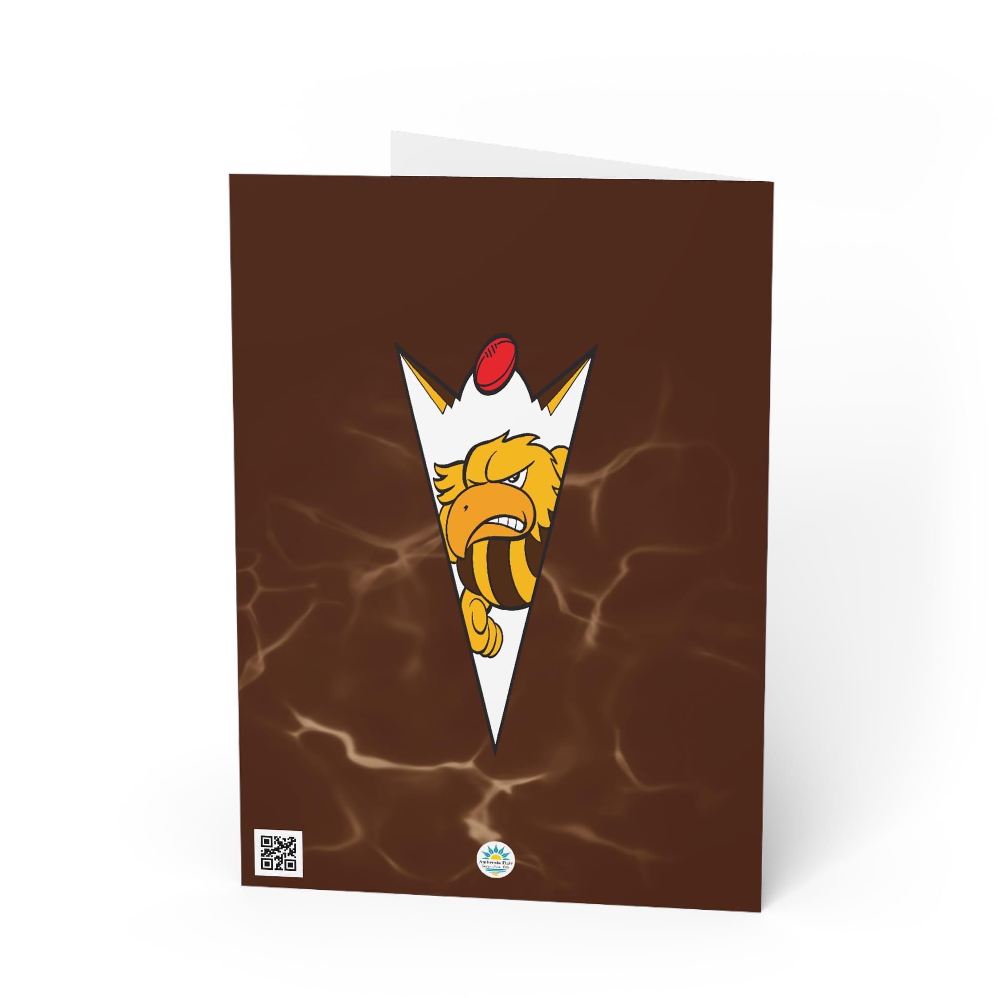 Make their birthday extra special with The Hawks birthday greeting card! Featuring a tough and determined hawk mascot, this eye-catching design proudly showcases the iconic brown and yellow colours. Printed on premium-quality paper, it’s a standout choice for any dedicated Hawks supporter.